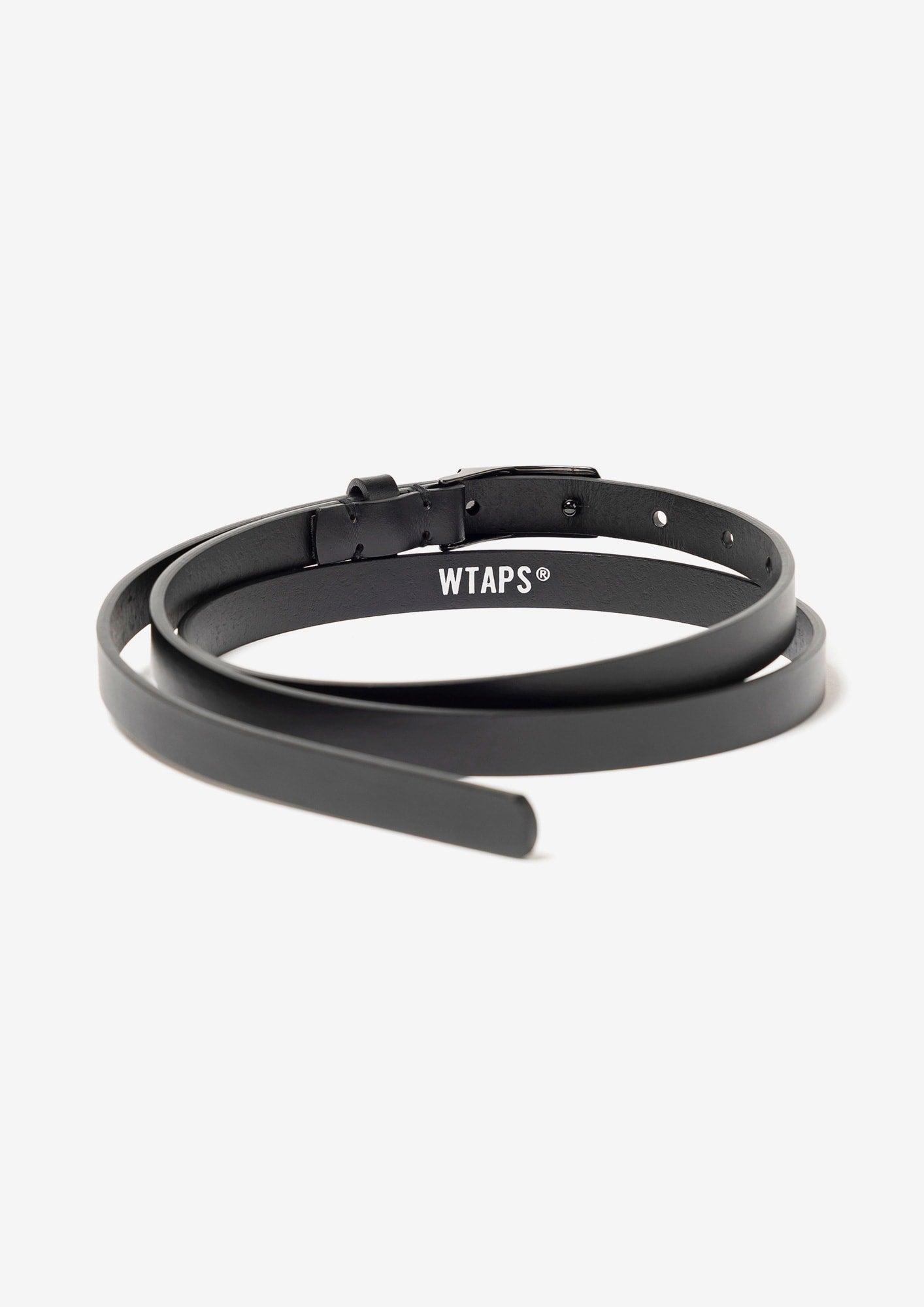 リサイクルレザーを使用した15mm幅のベルト。オリジナルのバックルが特徴。